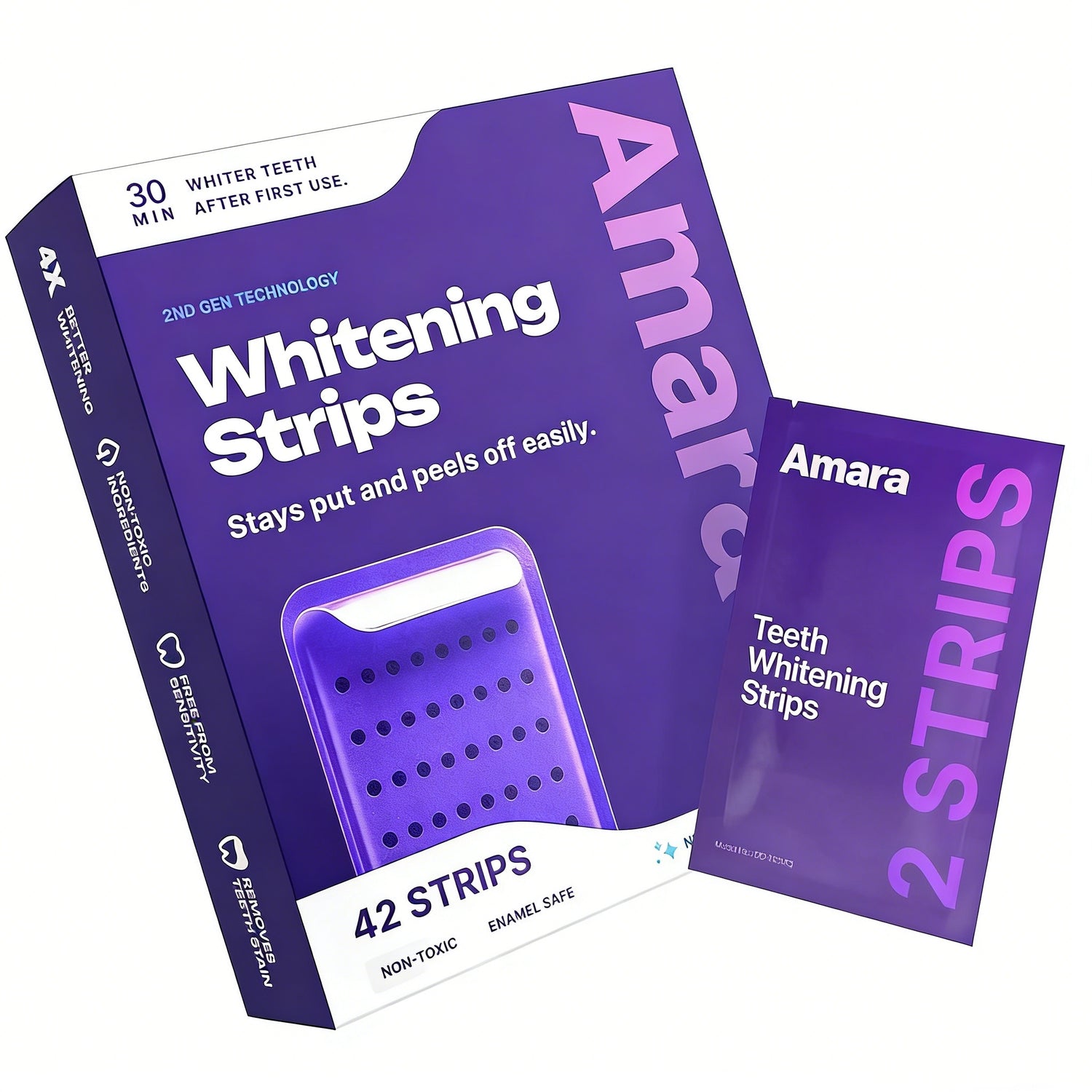 Amara Purple TeethWhitening Strips-7/21Whitening Sessions-Safefor Enamel-Non Sensitive Teeth Whitening-Peroxide-Free