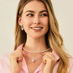 あなたの人生に対する楽観的な姿勢と同じように、あなたの心をまばゆいばかりのリボンで包みましょう。 「シュガーボウボウ」コレクションは、リボンの繊細でロマンチックな美しさにインスピレーションを得ています。きらめく宝石と精巧なデザインが特徴的なこのコレクションは、リボンの甘く遊び心のある魅力を余すところなく表現しています。恋に落ちる喜びと興奮を称え、身に着ける人がロマンチックな一面を見出し、心のままに進んでいくよう促すコレクションです。 甘いひとときを、私たちの「シュガーボウボウ」ジュエリーデザインで彩りましょう。人生におけるすべての甘い思い出とかけがえのない瞬間への感謝の気持ちを、次の瞬間もずっと輝かせ続けてください。 贈り物があなたの愛情表現であるなら、彼女に「愛しい人、あなたは私の人生で最高の贈り物です」と伝えることを忘れないでください。 素材: 14Kホワイトゴールドメッキ925スターリングシルバーとホワイトキュービックジルコニアストーン ペンダントサイズ: 13mmX20mm チェーンの長さ: 40+2.5+2.5cm 重量: 5.2g