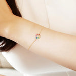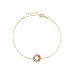 レインボーフラワーカラーサファイア 14Kイエローゴールドブレスレット