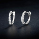 14k Solid White Gold Round Cut Prong 0.20cttw Moissanite Simulated Diamond 15mm Small Little Tiny Huggie Hoop Earrings Dainty Fine Jewelry For Women Girls D-E Color VVS Clarity.