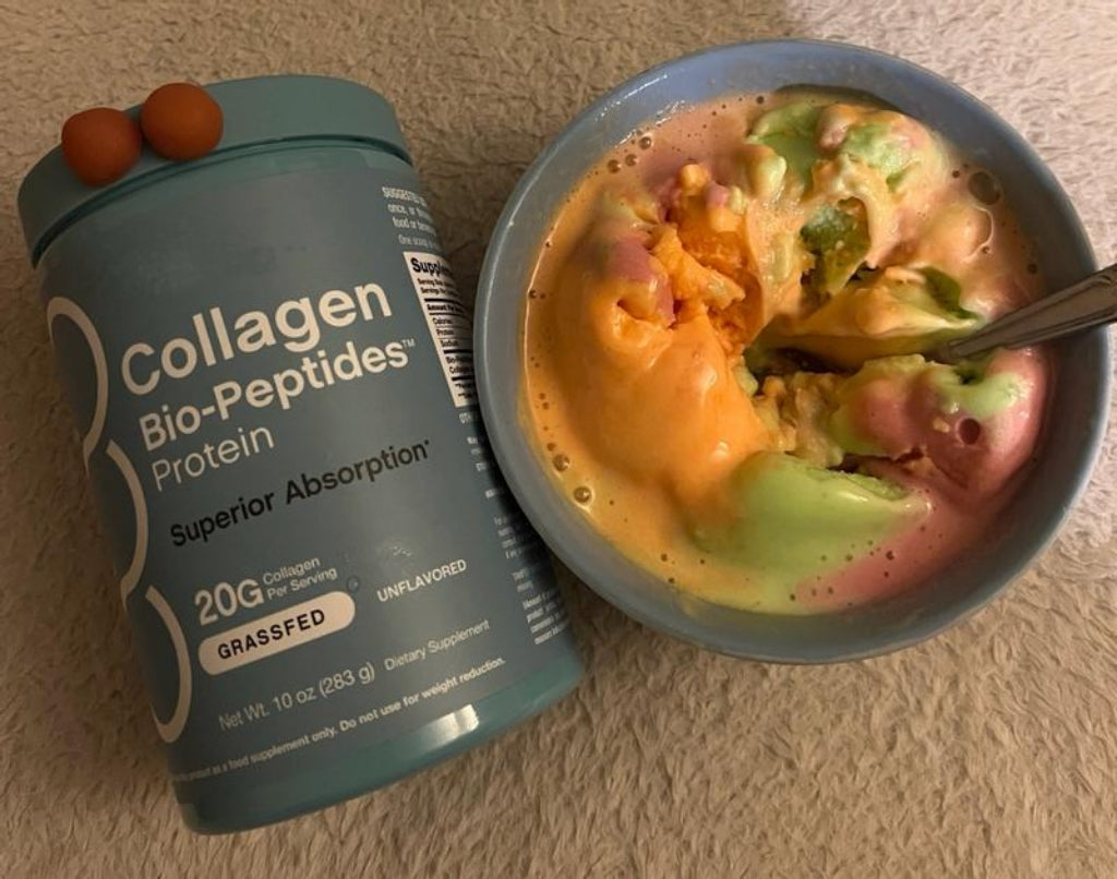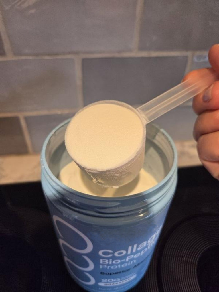 I like that this collagen powder is both grass-fed and kosher, which makes it feel like a cleaner option compared to others. It mixes best with juice or a flavored drink mix since the taste on its own is a bit weird. I did notice it sometimes upset my stomach, but otherwise it blends smoothly and I donโ€™t have any other complaints.