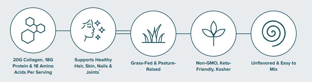 • Hydrolyzed collagen peptides from grass-fed, pasture-raised cattle (types I and III)