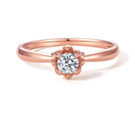 This exquisite engagement ring is crafted from premium rose gold, boasting a sleek, polished band engineered for optimal comfort and wearability. At its center, a brilliant-cut diamond is secured in an intricately designed petal-shaped setting—an elegant detail that both accentuates the stone’s luminous fire and symbolizes the blossoming of a lifelong commitment. Meticulously finished with refined craftsmanship, this piece embodies timeless sophistication, serving as a enduring emblem of devotion to be exchanged on your momentous occasion.