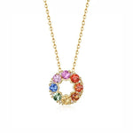 Rainbow Flower Multicolored Sapphire Circle 14K Yellow Gold Necklace