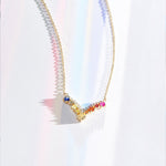 Rainbow Ruffle Colored Sapphires 14K Yellow Gold Necklace